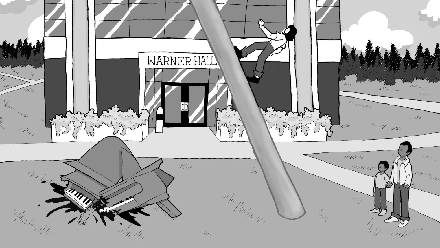 Yesterday, Carnegie Mellon University hosted a demonstration of kinetic and potential energy from an as-yet unknown artist. This event was witnessed by two Walking to the Sky statues who considered it a spectacle to behold and by several attendees who called it “brief but memorable,” remarking on how the cacophonous screech upon impact was rather similar to my own reaction towards events soon to be detailed.