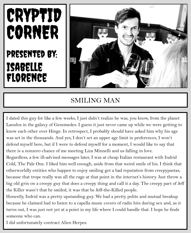 Today, Readme spent the last of our meager budget purchasing kibble from PetSmart to stave off the death throes of one of our small, orphaned staffwriters. On our way out of the PetSmart, we were attacked by a man with a knife who took all of our print quota, forcing us to outsource this issue’s printing to one of our parents. To put it simply, we are pitiful, abject, and loathsome. Please give us money. Even a penny would go a long way; we need copper to fix the wires for the 5W generator that powers everything we own, so …