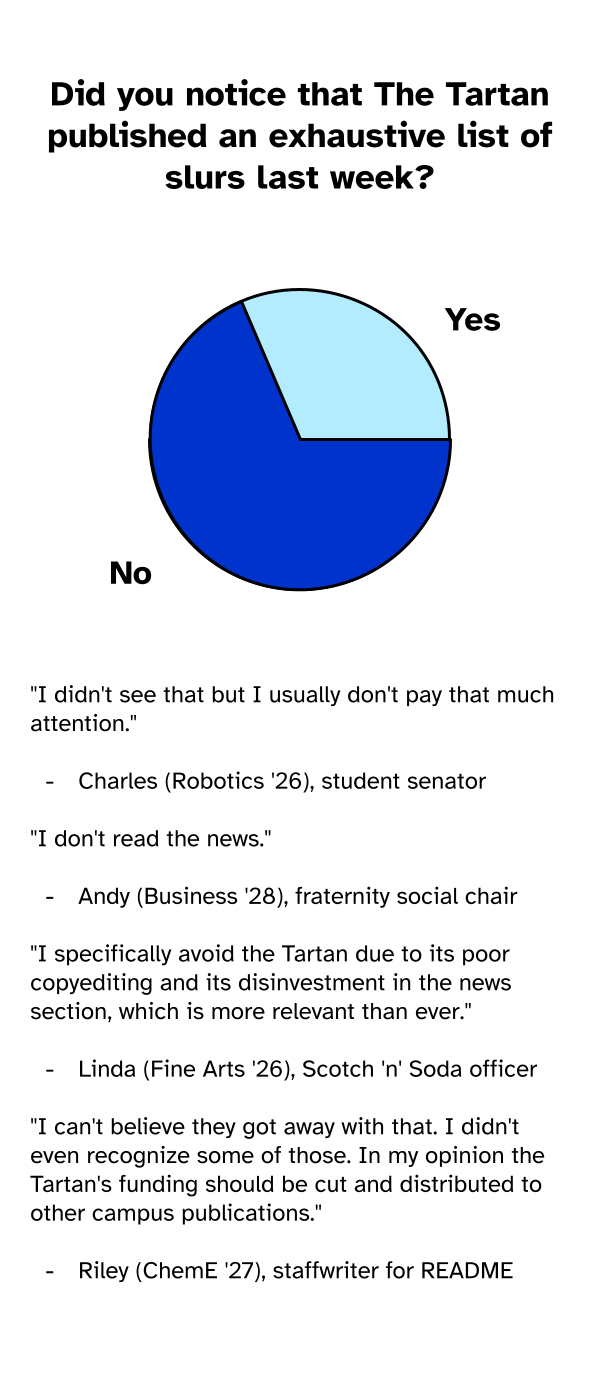 Walking to the Sky, installed in 2006 by prominent war criminal Jonathan Borofsky, is an iconic fixture of CMU's campus. Many have noticed that on some cloudy mornings, the statue standing on its lowest rung will be one step higher, and a new soulless, gendered sculpture will have taken its place. Nobody knows what happens to the statue at the highest position. Presumably, it has walked to the sky.