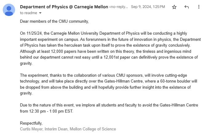 An announcement sent out earlier this week to Carnegie Mellon University students has created widespread controversy and discourse. The email, as seen below, disclosed an important warning for all students to avoid the Gates Hillman Centre on 11/25/24.